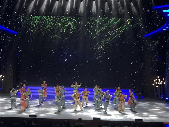 頒獎晚會由大地歡歌、小家大國、逐夢時代三個篇章10個節目組成,湖北舞蹈作品《擊壤歌》第一個出場表演,小朋友們童趣十足的表演贏得了熱烈掌聲。表演結束后的現場采訪環節,主持人問到下一個夢想是什么,小朋友們回答是“春晚舞臺”,逗笑了現場觀眾。頒獎晚會在《群星耀中華》的歌聲中結束?!度盒且腥A》是湖北省第十六屆全國群星獎的音樂類獲獎作品。