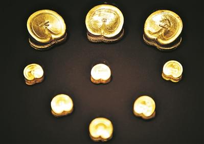 西漢是我國歷史上一個名副其實的“多金王朝”,其黃金庫存,可謂中國古代歷朝之最。策展人介紹,南昌西漢海昏侯劉賀墓共出土金器478件,合計115公斤。其中金餅385枚,馬蹄金48枚,麟趾金25枚,是迄今我國漢墓考古發現金器數量最多、種類最全的一次。