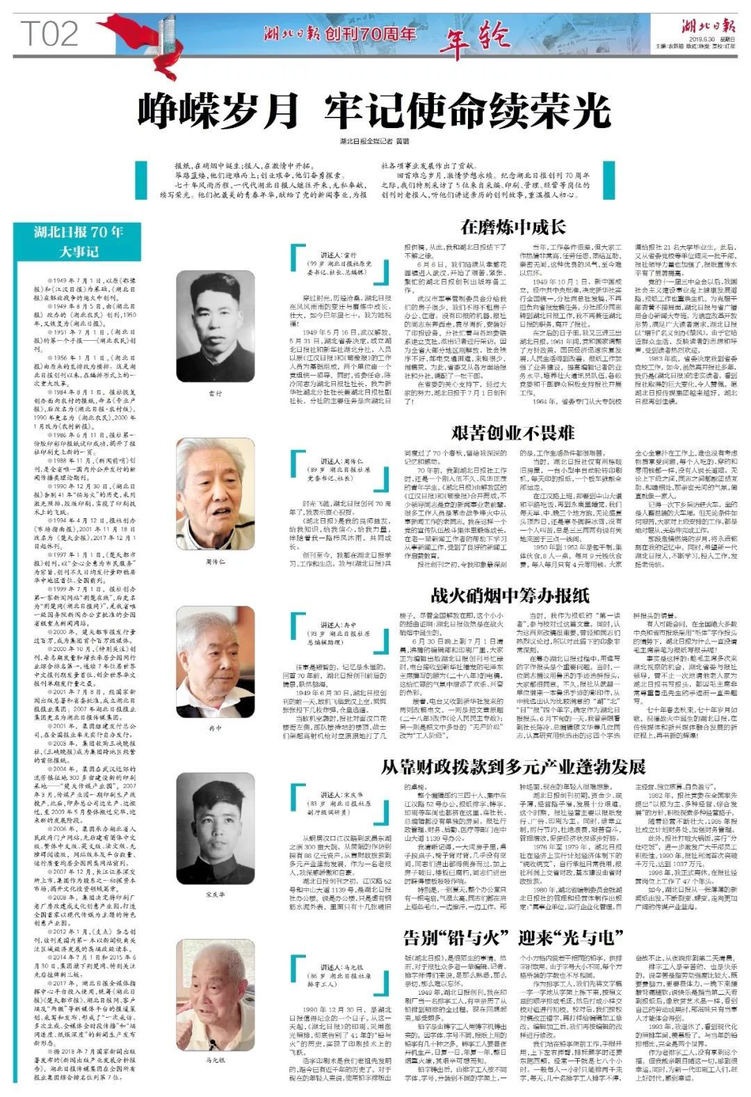 《湖北日?qǐng)?bào)》70華誕之際,5位來(lái)自采編、印刷、管理、經(jīng)營(yíng)等崗位的老報(bào)人,講述自己親歷的創(chuàng)刊故事,重溫報(bào)人初心。