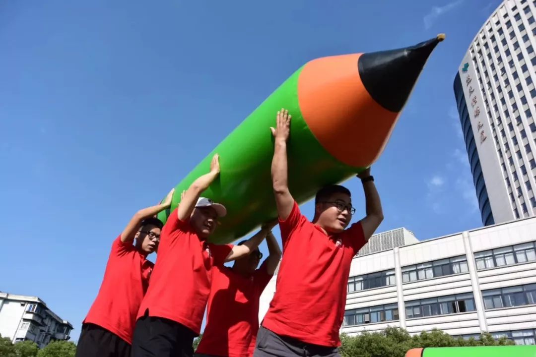 開幕式后,草坪上拉開的趣味團隊比賽共準備了5個項目