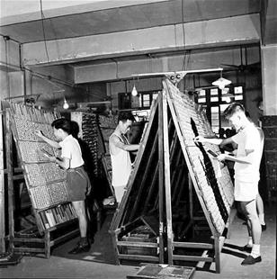 圖為:1960年,湖北日報印刷廠排字生產(chǎn)情景。