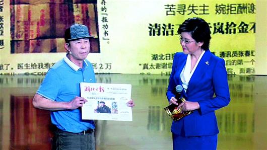 圖為:2019年6月17日,中央電視臺《時代楷模發布廳》播出張富清先進事跡,湖北日報記者張歐亞(左)講述老英雄是如何被發現的。