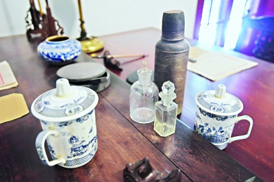 復(fù)原的蔡和森辦公室內(nèi)辦公桌上的玻璃藥瓶