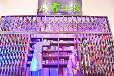 位于漢口勝利街的中共中央機(jī)關(guān)舊址內(nèi)還原的長(zhǎng)江書店場(chǎng)景