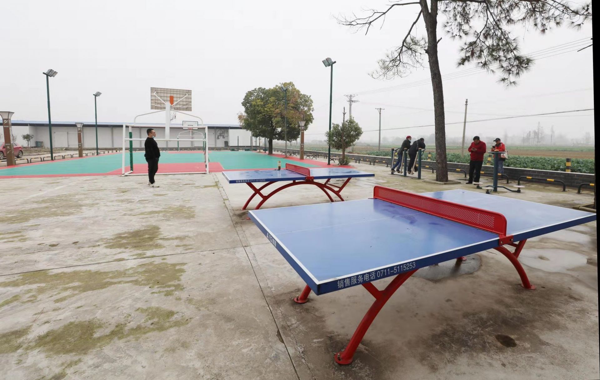 近日,記者在湖北省孝感市云夢縣隔蒲潭鎮鞠堤村看到,文化廣場上建有寬闊的籃球場、配備嶄新的健身器材和公用棋盤,村民們在這里鍛煉、休閑,其樂融融。