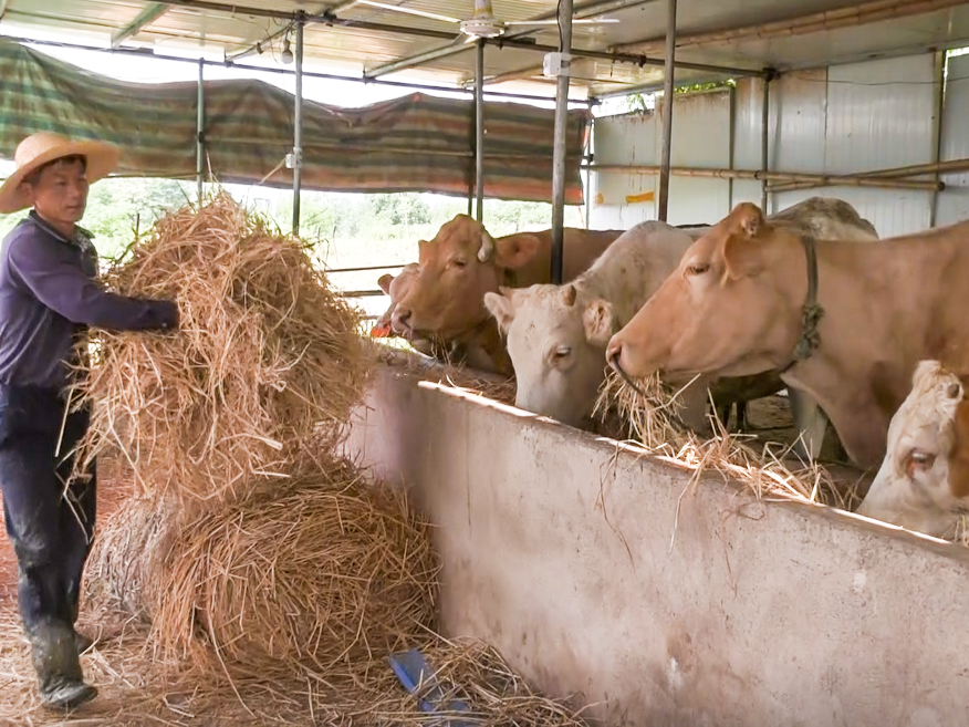 脫貧戶胡加全在給牛投喂飼料。通訊員供圖