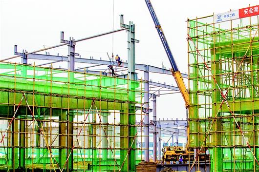 圖為:投資20億元的華中光電軍民融合產業園今年底竣工。目前,工人正在進行廠房主體結構施工。(湖北日報全媒記者張鴻通訊員晏美華攝)