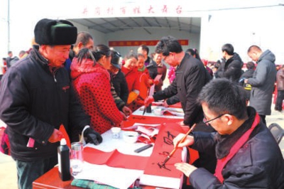 書法家們現場寫春聯。