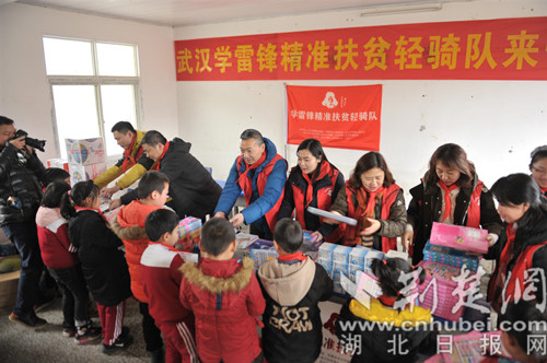 “每個學生可以領(lǐng)到一份學習用品、一份文體用品和一套衣物。”在愛心物資捐贈現(xiàn)場,武漢市青少年發(fā)展基金會外聯(lián)部部長易建新說,學雷鋒精準扶貧輕騎隊每周或者每兩周開展一次學雷鋒活動,深入精準扶貧家庭、留守兒童和貧困學校,送物資、送技術(shù)、送項目,組織城鄉(xiāng)兒童“手拉手”共建活動,實行輕便式、點對點的“輕騎兵”式扶貧。今年,這項活動將在大悟縣持續(xù)開展一年。