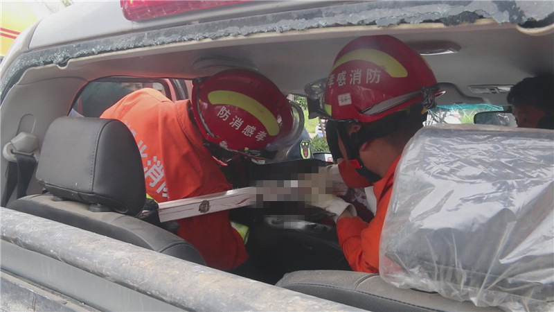 湖北日報訊(記者張衛(wèi)華、通訊員王基達、李建堂)7月8日13時56分,107國道孝感市金卉莊園路段一輛行駛中的皮卡車左前輪突然爆胎,失控的汽車撞向路邊護欄后導(dǎo)致車頭嚴重變形,駕駛員右肩被護欄穿透,被卡在駕駛室內(nèi)無法動彈,現(xiàn)場情況十分危急。孝感市消防救援支隊直屬中隊接到出動命令后,迅速趕赴現(xiàn)場實施救援。