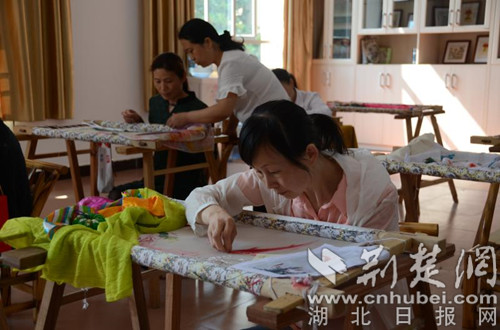 近年來,大悟縣婦聯圍繞脫貧攻堅戰略部署,深化巾幗脫貧行動內涵,精心打造“媽媽回家”漢繡巧手脫貧項目,先后斬獲國家級公益獎項3個,至今已成立漢繡大師工作室1所、漢繡工坊2所、家庭繡坊8所,共培訓繡娘200余人次,實現銷售收入20余萬元,形成的產、學、研、展、銷一體化運營模式,增強了項目造血功能。2018年8月,大悟縣漢繡基地被全國婦聯授予“全國巾幗脫貧示范基地”。
