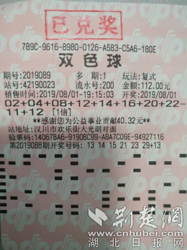 荊楚網客戶端—荊楚網消息(通訊員 李建民)8月1日晚,福彩雙色球第19089期開出02、04、14、16、20、22+11的大獎號。當期全國共中出7注一等獎,單注獎金為696萬元。我省彩民好運延續,收獲了其中3注一等獎,大獎分別出自武漢漢陽區、孝感漢川市和黃石市。