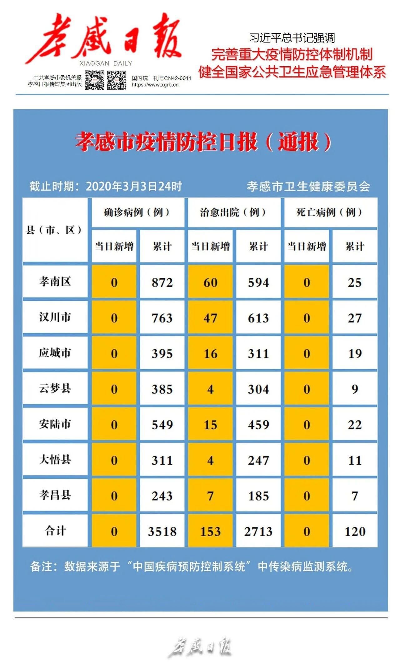 孝感市新型冠狀病毒感染的肺炎疫情速報(3月3日)