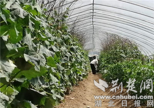 在水城村、馬鞍村和山口村,建成了一條綠色蔬菜長廊。山口村15個蔬菜大棚一字排開,里面種著莧菜、茄子、荊芥、辣椒等蔬菜。舒明文介紹,像這樣的蔬菜大棚,三個村共建有60個,由政府出資建設,分別承包給76個貧困戶,對種植半畝以上的蔬菜大棚,政府每畝獎補2000元。每個大棚每年800元左右的租金,全部納入村集體收入。
