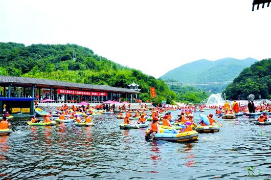 淮河鎮曾以伐木燒炭、開山采礦為主要經濟來源,日子越過越窮。近3年,該鎮封山育林,轉手發展綠色經濟,建起西游記漂流、抱樸谷兩大景區,去年又動工建設玉皇頂、神農部落景區,規劃投資6億元,全鎮先后建起藍莓、茶葉、核桃、牡丹等“八大莊園”,總面積約5萬畝,繪成“四季花海,全景淮河”。2016年,該鎮接待游客30多萬人,直接收入3000萬元。