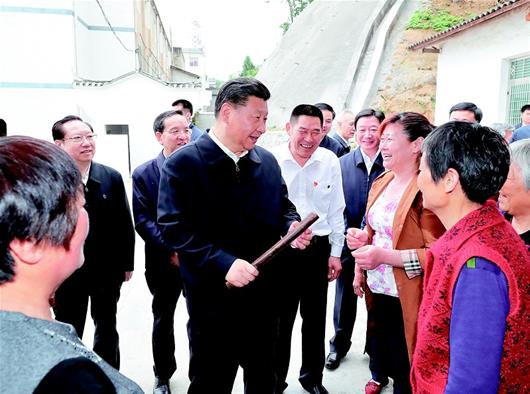 習近平走進村便民服務室,詳細了解許家沖村黨組織建設和便民服務情況,饒有興趣聆聽村干部們齊聲高唱用漁鼓調(diào)填詞創(chuàng)作的《村黨員公約》,夸獎內(nèi)容寫得好、朗朗上口。他還到村電子商務服務站察看庫區(qū)特色產(chǎn)品展示,了解村民依托沿江依壩優(yōu)勢發(fā)展特色民俗產(chǎn)業(yè)、以特色產(chǎn)業(yè)帶動創(chuàng)業(yè)就業(yè)等情況。他強調(diào),鄉(xiāng)村振興不是坐享其成,等不來、也送不來,要靠廣大農(nóng)民奮斗。村黨支部要成為幫助農(nóng)民致富、維護農(nóng)村穩(wěn)定、推進鄉(xiāng)村振興的堅強戰(zhàn)斗堡壘。