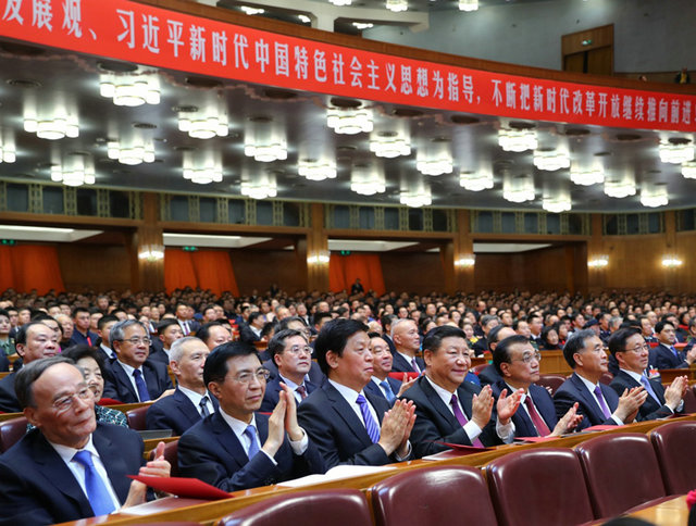 12月14日,慶祝改革開放40周年文藝晚會《我們的四十年》在北京人民大會堂舉行。習近平、李克強、栗戰(zhàn)書、汪洋、王滬寧、韓正、王岐山等黨和國家領(lǐng)導人,與3000多名觀眾一起觀看演出。新華社記者 謝環(huán)馳 攝