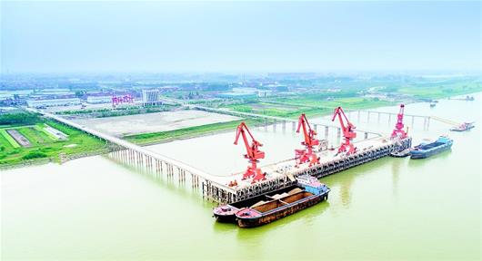 小池鎮黨委副書記劉斌介紹,小池港占據獨特的區域優勢,長江黃金水道、滬蓉高速、福銀高速、京九鐵路等多條交通動脈匯集于此,小池港也由此成為鐵水公多式聯運的重要節點。