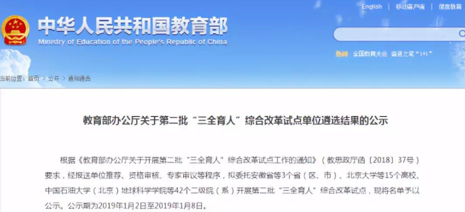 試點工作聯盟。教育部組織成立“三全育人”綜合改革試點工作聯盟,遴選確定聯盟召集單位,推動試點單位開展經驗交流、互測互評、共建共享,強化研究協同和工作協同,切實發揮示范引領和輻射帶動作用。
