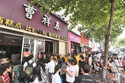 圖為:昨日,曹祥泰門前排起了100多米的長隊(duì)