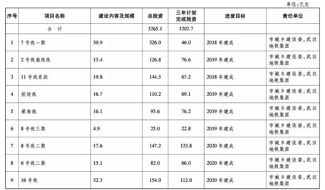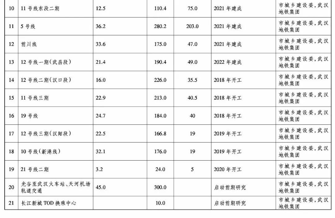 根據方案,武漢地鐵12號線二期(漢口段)、11號線三期、19號線今年開工,明年將建成武漢地鐵2號線南延線、8號線三期、紙坊線和蔡甸線。