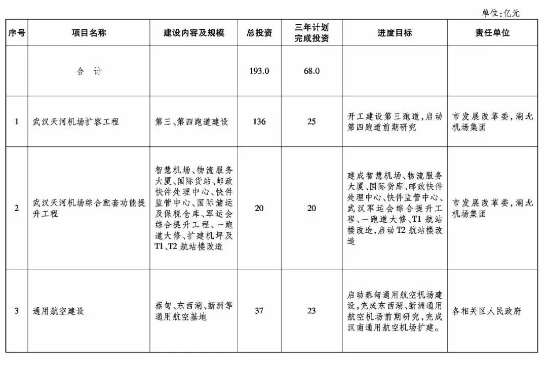 3年內將建設通用航空,啟動武漢天河機場擴容、機場綜合配套功能提升工程。
