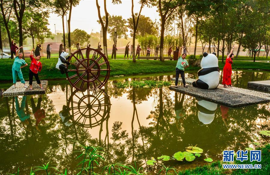 市民在成都市三環(huán)路北四段的熊貓綠道鍛煉(2018年6月12日攝)。新華社發(fā)(林學(xué)美攝)