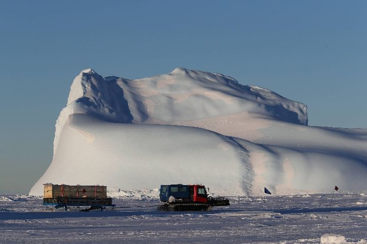9、為打通冰面通道,考察隊進行海冰探路,繼而冰面運輸與空中吊運相結合,展開本次科考首場攻堅戰。由于泰山站二期工程建設和中山站一些建設項目,本次物資卸運量大,冰面運輸距離遠達44公里。↓