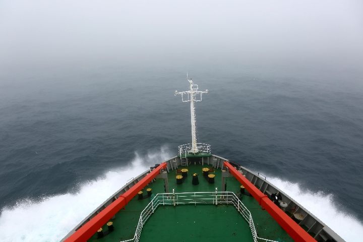 4、11月21日,“雪龍”號在風雪交加中駛過南緯60度,順利穿越“咆哮西風帶”“魔鬼西風帶”。↓