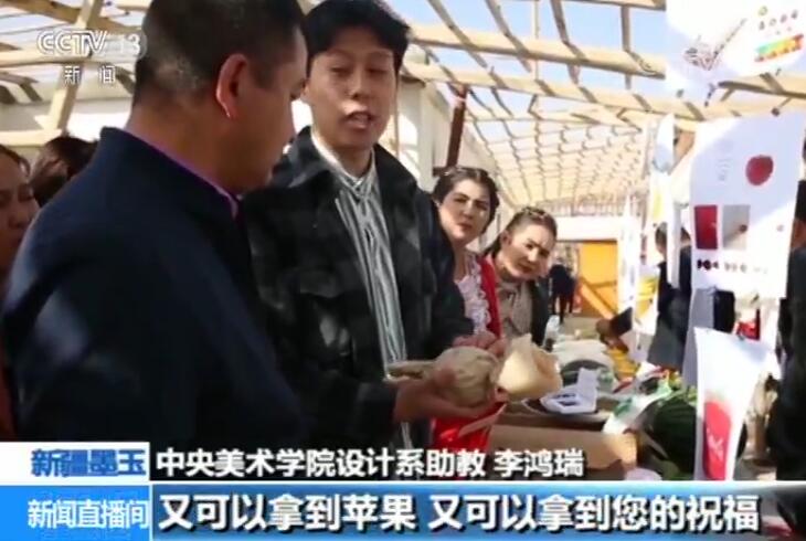 中央美術學院設計系助教 李鴻瑞:桑皮紙是墨玉縣的非物質文化遺產,買到的人打開這個蘋果的時候,又可以拿到蘋果,又可以拿到您的祝福。