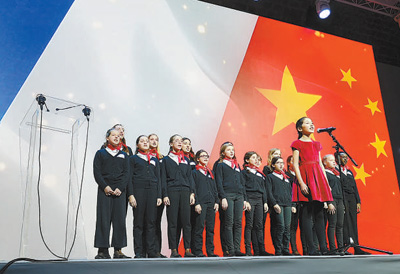 3月24日,在巴黎舉行的光影流年——中法友好故事會(huì)活動(dòng)上,法國(guó)中學(xué)生用中文合唱《讓我們蕩起雙槳》。(本報(bào)記者 李志偉攝)