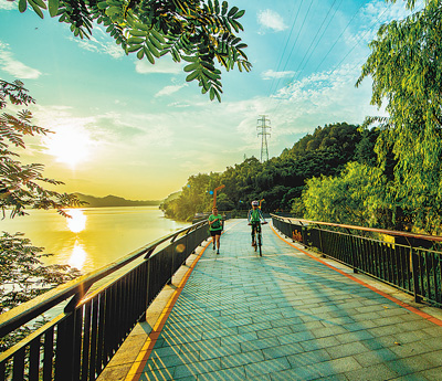 像青山湖綠道這樣的綠色經(jīng)緯線,正在編織一張遍布杭州城鄉(xiāng)的綠道網(wǎng)。在杭州,環(huán)繞江邊、湖邊、河邊、山邊的各類綠道,總長(zhǎng)已有3500多公里。