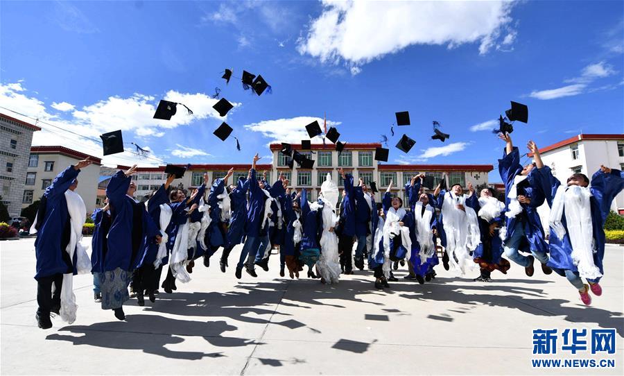 西藏藏醫學院碩士畢業生歡慶順利畢業(2018年6月14日攝)。新華社記者 晉美多吉攝
