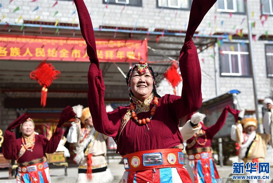 2月5日,拉薩阿壩林卡社區群眾慶祝春節和藏歷新年。新華社記者 覺果 攝