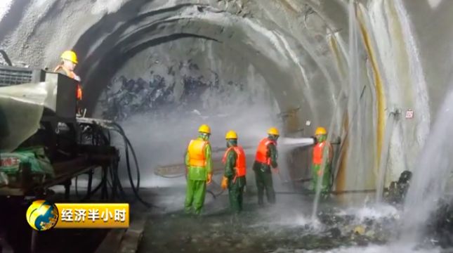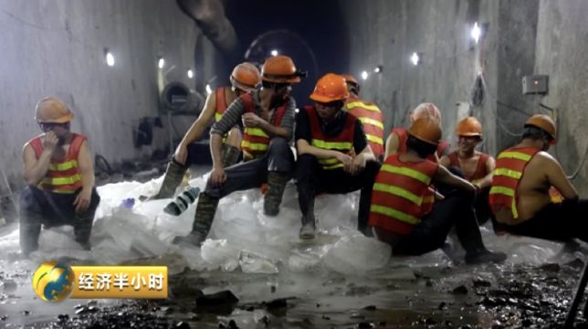 大柱山隧道只有14公里,但要穿越6條斷裂帶。和進口截然不同,出口已位于高地熱段,隧道內的溫度接近40度,工人們的衣服根本穿不住。沒有冰塊降溫的時候,他們只能用涼水澆在身上,給自己降降溫,再接著干。