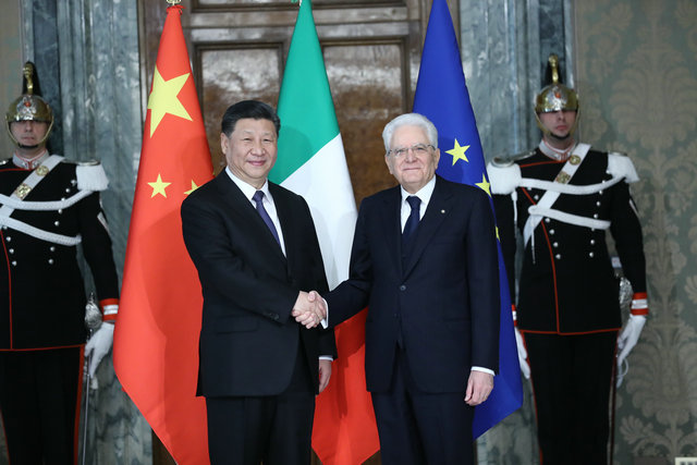 2019年3月22日,國家主席習近平在羅馬同意大利總統馬塔雷拉舉行會談。