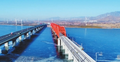 京張高鐵全長174公里,是2022年北京冬奧會的重要交通保障線。圖為建設中的京張高鐵官廳水庫特大橋。新華社發