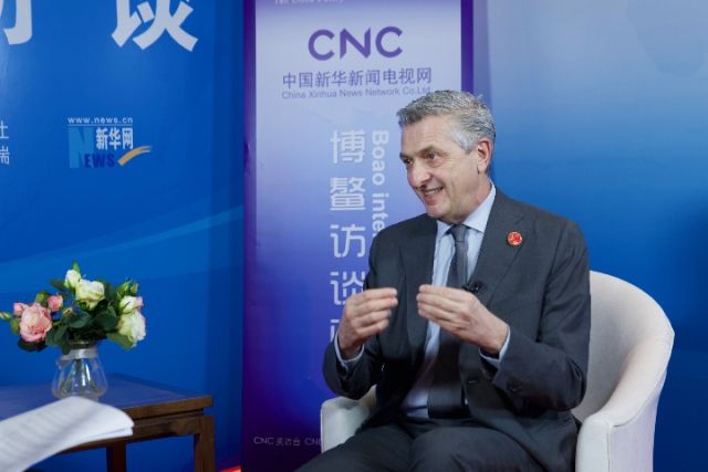 3月28日,聯合國難民事務高級專員菲利波·格蘭迪在海南博鰲接受新華社記者專訪。(新華社記者侯東濤攝)
