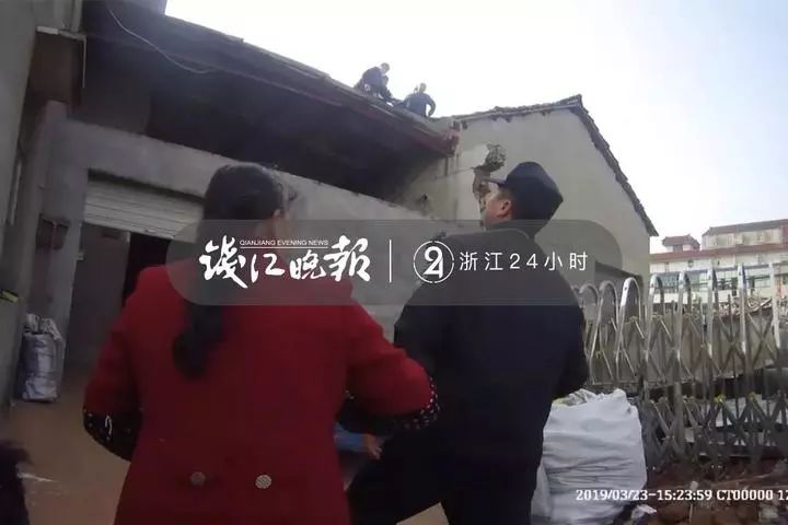 3月23日下午3點,浙江嘉興海寧市公安局許巷派出所接到群眾報警稱,許巷村有位老太太正在二樓平臺上,十分危險!情況緊急,值班民警顏國根迅速帶領隊員出警,正在事發地附近巡邏的輔警徐嘉豪和高立新,接到指令后先行趕赴現場。