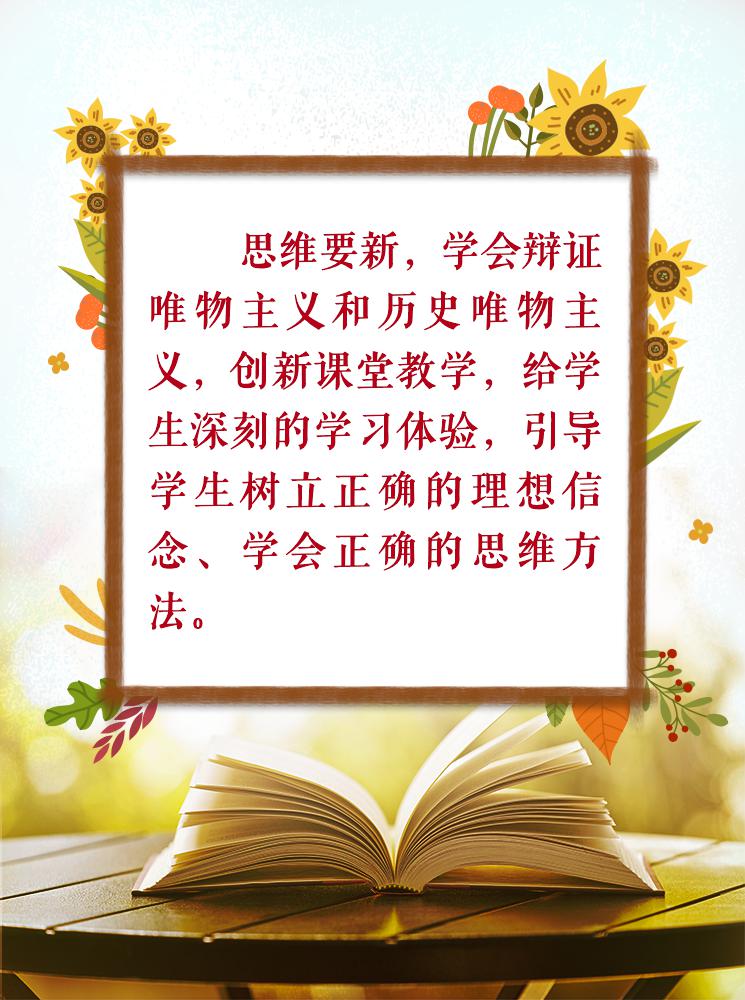 習近平總書記在學校思想政治理論課教師座談會上特別強調了教師的重要作用:辦好思想政治理論課關鍵在教師,關鍵在發揮教師的積極性、主動性、創造性。思政課教師,要給學生心靈埋下真善美的種子,引導學生扣好人生第一粒扣子。