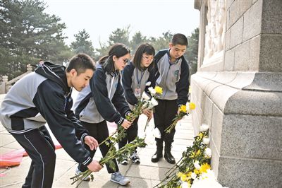 學(xué)生在河北承德熱河革命烈士紀念館緬懷先烈。