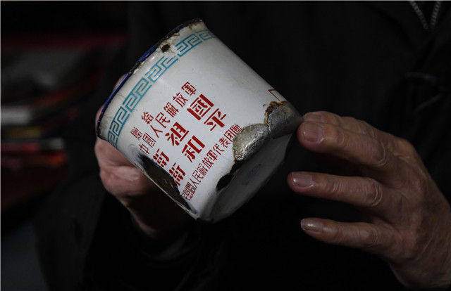 從1954年起,這個搪瓷缸就是張富清生活的一部分。如今,補了又補,不能再用,張富清就把它認真保存了起來。
