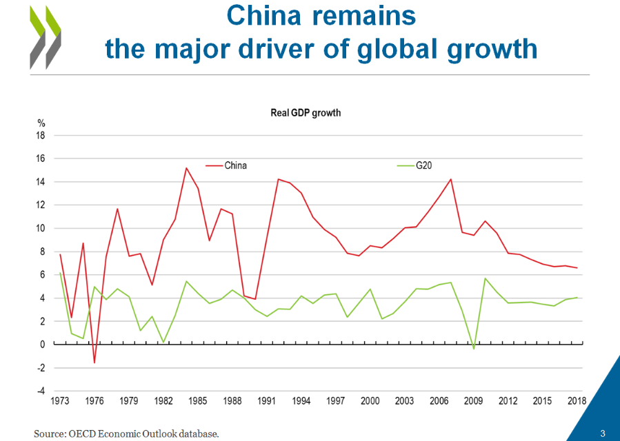 中國仍是世界經濟增長的主要動力。圖片來源:經合組織《中國經濟調查》報告