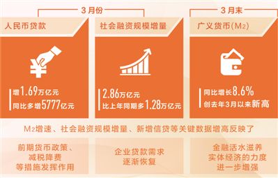 中國人民大學(xué)重陽金融研究院副院長董希淼認為,總體來看,3月份廣義貨幣增速、社會融資規(guī)模增量、新增信貸等關(guān)鍵數(shù)據(jù)增高,是前期貨幣政策、減稅降費等措施發(fā)揮作用的體現(xiàn),同時企業(yè)貸款需求也在逐漸恢復(fù),金融活水滋養(yǎng)實體經(jīng)濟的力度進一步增強。