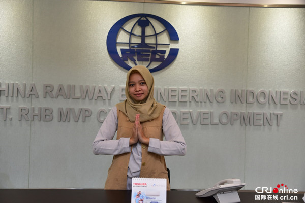 這位印尼女士名叫Ima,今年26歲,是中鐵國際印尼公司聘請的前臺,在公司工作有三年多了。