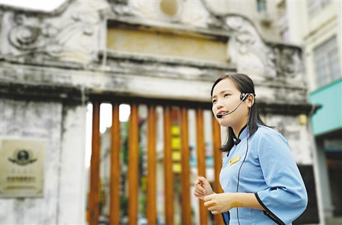 北海景區(qū)公司的工作人員王蓉向游客介紹北海老街。