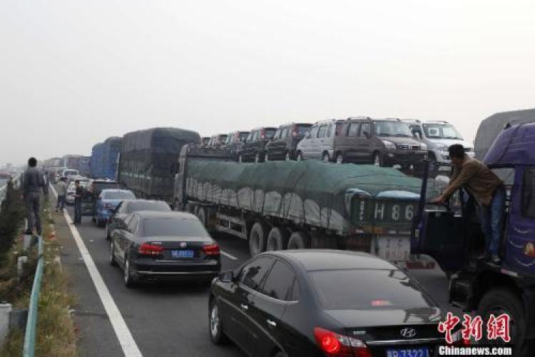 ↑資料圖:高速出現的擁堵。中新社發 王中舉 攝