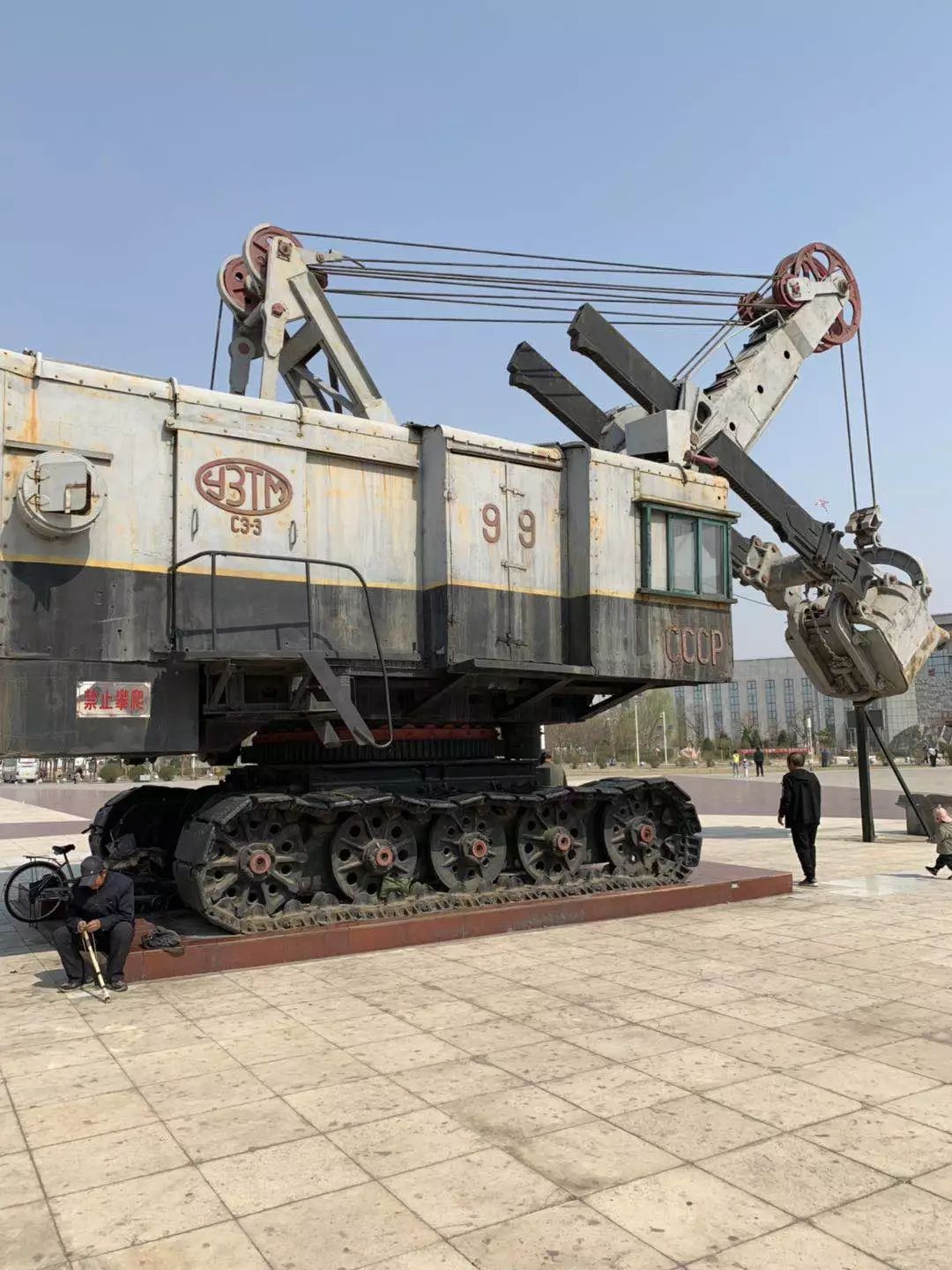 閔師傅告訴我,這個礦坑東西長3.9公里、南北寬1.8公里、垂深350米、總占地面積7.02平方公里,有38個北京故宮那么大,剛剛看到的20多米長的龐大機車,如果放到礦坑里不過就是一個小玩具,但就是靠著它們,海州露天礦半個多世紀以來拉出了2.44億噸煤炭,車廂連起來能夠整整繞地球一圈。