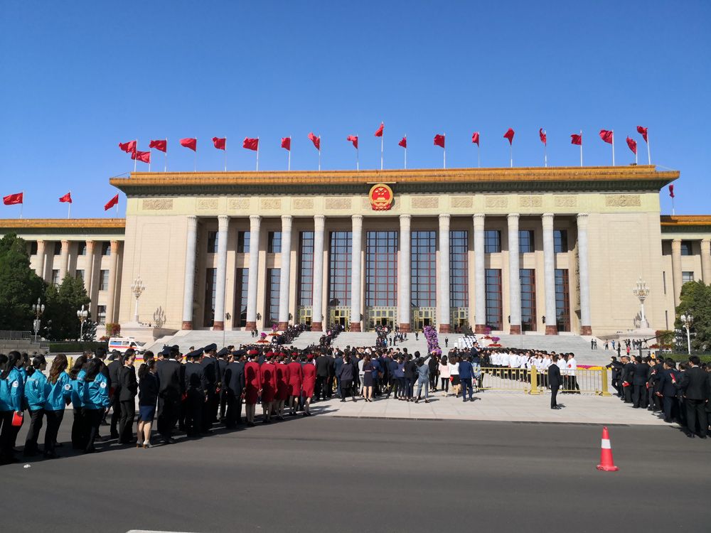 △上午8點(diǎn)半,與會(huì)者在人民大會(huì)堂東門外排隊(duì)入場。(央視記者馬立飛拍攝)