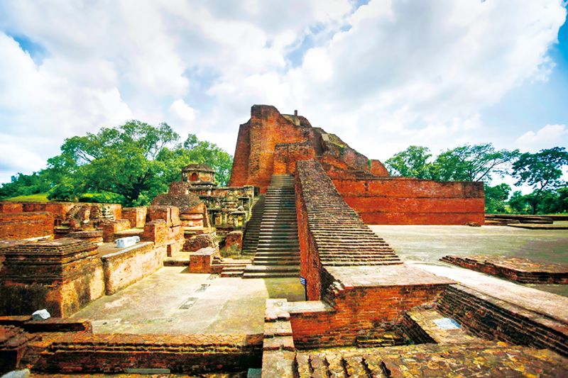 玄奘,唐代著名高僧,中外文化交流杰出使者。他歷經艱辛到印度取經,回國后主要從事佛經翻譯,譯經數量占到唐代譯經總卷數的一半以上,所著的《大唐西域記》一書,為研究中古時期中亞、南亞諸國的歷史、地理、宗教、文化等提供了重要資料。上圖為山西省稷山縣青龍寺“玄奘取經圖”壁畫(局部)(新華社記者 馬毅敏/攝)。下圖為根據《大唐西域記》確認的印度那爛陀寺遺址(新華社記者 鄭煥松/攝)。